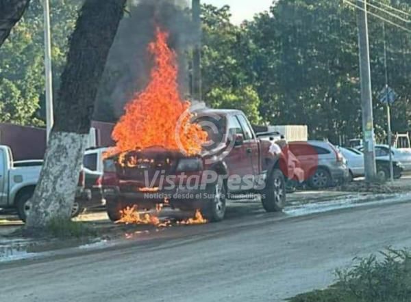 Camioneta termina envuelta en llamas